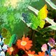 立体的雀、蝴蝶、随风飘扬的树叶,以漂浮的方式附着。