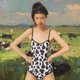 - 有两种款式 紫色大理石印花和黑白奶牛印花 可爱基础的设计不挑身材,小弹👧都能驾驭 元气显白的配色很适合夏天