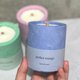 一款时尚的香薰蜡烛,结合了粗犷的质感和华丽的柔和色彩。