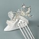 【冻蝶】手作銀色蝴蝶树脂花瓣发梳
