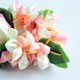 ★颜色与材质:粉色欧根纱丝带+白色缎带花朵+鲜绿人造叶片