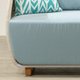 蓝白交织色调营造清新氛围,扶手与椅背一体成型,搭配流线贴地设计。30cm厚实高弹椅垫带来极致舒适感