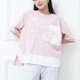 粉红色电锈异材质拼接上衣 粉红色 - 女装 T 恤 - 其他材质 粉红色