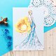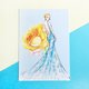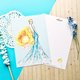 蓝蕾丝礼服配上黄玫瑰,由一对耳环发想出来的优雅设计。