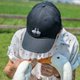黑色复古经典“老帽”是万年不败的单品,搭配妞宝鸭鸭图腾,十分吸睛。
