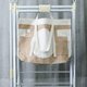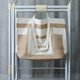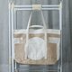 袋身一块布用折叠方式缝制,做出多个收纳间隔,保留原布边。