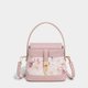 - 全新演绎!Just Fancy方锁水桶包换上全新形象,典雅的印花图案让整个包包看起来活泼而优雅。硬挺的水桶包身让整体看起来非常有质感。搭配可拆卸式的调节式背带让你能轻松地将手提包变成斜背包。