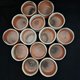 揉合台湾陶土、日本白土、紫红土等,手工拉胚成形后,加入叶脉、花辨、树纹等自然元素及古书篆刻,经1280度高温柴烧,展现自然落灰、火纹痕迹、釉色变化等,作品融合着大自然意象,并且独一无二。
