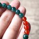 天然油清翡翠搭配红玛瑙,色泽温润典雅,深邃如森林般清新,带来满满活力与正能量。翡翠自古被誉为养生宝石,有助调和气血、稳定情绪;红玛瑙象征热情与活力,促进血液循环、增强体力。两者完美融合,守护你的身心健康。