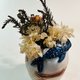 熏烧陶是用特殊技法,经过多次流程,完全手工制作,手捏土胚、抛光打磨、低温素烧、上色、高温烧结、打蜡、贴金箔,后制鲸鲨上色。由于熏烧陶的特性要保留陶的毛细孔,所以不适合拿来装水,只适合当摆设,放干燥花。