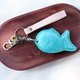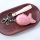 搭配古铜色五金与素色皮革吊带,更有温暖的手作感。挂在包上,就像带着一条会给你「今天会顺顺利利」的小鱼,水啦 !