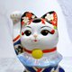 招财猫的面部表情温柔而灵动,耳朵与头部的花饰细致繁复,彰显出传统美学与匠人精神。