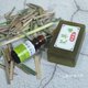 - Vegetable oil soap base, lanolin, cryogenically ground wormwood powder, lemongrass essential oil