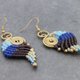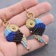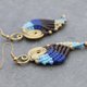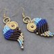 这是手工编织的耳环与粉红色,紫色,绿色和蓝色棉花蜡线编织与黄铜珠。耳环挂在天然黄铜耳在线