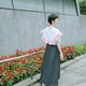 裙子长度让腿看起来修长,下摆一点点的抽须增加一些丰富性