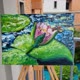 I use oil paints. Impasto! I work with a palette knife and make thick layers of paint.