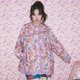 - 前中开襟搭配大号粉色纽扣闭合。 动物印花与格纹叠加,营造复古气质, 超大蝴蝶结围巾设计,增强造型感。 两侧插袋设计,方便日常出行穿着。
