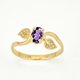 椭圆形紫水晶。紫水晶订婚戒指。紫水晶复古戒指。二月生日石戒指。金叶戒指。