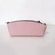 A cat-shaped pen case made of a light pink suede-style fabric.
