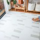 “北欧农舍”巧拼地垫,以北欧乡村农舍的纯净与质朴为灵感,选用白底搭配灰色方块与线条,呈现温暖而和谐的视觉效果;其白色底色象征纯粹与清新,灰色图案如同乡间石板般稳重自然,两者完美融合,为空间注入北欧乡村的舒适与质感。