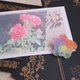 The paper under the brooch is the size of the postcard. (the 4th image)