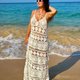 波西米亚风钩针蕾丝海滩比基尼罩衫长洋装,夏日必备单品