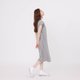 介於無袖及小蓋袖之間的設計,修飾手臂線條。