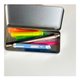 印有可爱图案的铁制铅笔盒,容量足够大,可以容纳各种文具用品。