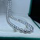 这是一款天然真多麻色(Tennyo 真多麻)Akoya珍珠串成的经典珍珠项链,41cm 。带有冷调蓝粉光泽,如同晨曦映照下的湖面光彩。其中: