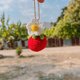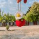 绒线钥匙圈“番茄雏菊双花” 明亮鲜艳的设计,红色与白色花朵的搭配,显得格外可爱温柔。