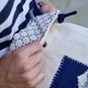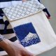 - 富士山山型刺在蓝染古布上
