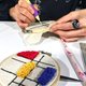透过欣赏荷兰艺术家 皮特蒙德里安的「抽象矩形画作」,黄金比例法绘制自己的图稿,再利用俄罗斯刺绣重复戳戳的乐趣,完成一幅刺绣作品,仿佛自己也是一位画家。
