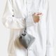 - mini bucket pouch, hand and wristlet carry, drawstring fastening closure, 1 interior zip pocket for coins, 2 card slots.