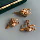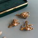80-90年间美国古董饰品,镀金幸运骨珍珠的耳环和胸针套组,小巧简约的幸运草和幸运骨可爱结合设计,带有祝福、快乐的美好意涵,为一组适合作为礼物的古董饰品。