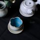 这款轮花杯子带着自然流畅的器型设计,杯口如盛开的花瓣,增添了俏皮且优雅的细节。外部釉色以温润的米色为基调,呈现出一种柔和的自然质感;内部则采用清新的湖水蓝釉,仿佛一片晴空倒映在水面上,带来视觉上的清爽感。
