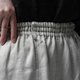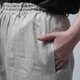 Our popular baggy pants now have an upgraded line made of premium linen! These are slightly silmmer than the original, making them easier to wear and look smarter. Hope you can see the beauty of this twill fabric: it's so soft and rich in texture. Becase it is tightly woven, it is so smooth on your skin and very durable. These pants have center seams on the legs, which create a long vertical look. The silhouette is wide, yet elegant and clean. Side pockets.