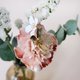 一朵雪白哑面的花朵配合另一朵金色光面的花朵,造成强烈的对比,再加上一颗小小的天然珍珠,更显贵气。