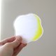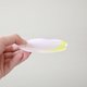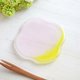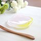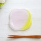 以四瓣花朵为雏型调整出透明玻璃的形状,再选用颗粒极细的玻璃粉末,以春季盛开的花卉为意象,在淡粉色中点缀黄色进行显色。