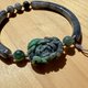 主体为手工雕刻的翡翠牡丹,呈现深绿与烟灰色调,在光线下散发温润光泽。