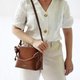 我们的第六项设计——可爱水桶造型包包,以富士山为名,受到富士山山脉及雪尖独特形貌的启发, 我们设计出此款独特的形状,也比传统水桶包更便于使用。方型包底设计,结型手提带,与金属环相互映衬,看起来简单却格外别致。