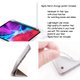 三折式保护盖采用轻巧耐用的 PU 皮革,触感舒适。保护主机的硬壳则为半透明(雾面处理)的 TPU 材质。