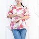 满版粉.红.橘.白花材.绿叶七分袖上衣 - 女装上衣 - 其他材质 多色