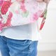满版粉.红.橘.白花材.绿叶七分袖上衣 透气舒适,春夏皆宜