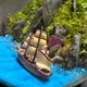 板页岩、蓝色水晶砂、蓝色细沙、凤尾苔、走灯苔、曲尾苔、桧叶金发苔、枫叶薜荔、帆船模型。