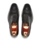 源起于17世纪的牛津鞋(oxford)款,因其繁复的手工而成为绅士协的象征,后因其精美雕花的特色而有了新的名称Brogue,Brogue鞋款以翼纹搂空及鞋身分割为其特色。这次林果不以常见的全雕花纹路(full brogue)或车线装饰,反以锯齿剪刀逐一剪出的个性锯齿边饰(sawtooth)搭配手工敲打的3/4翼纹雕花,再以7层裁片的堆叠车缝技巧呈现,多片车缝却没有鞋身增厚与缝线不适感,反而将线条化繁为简并保留份量感的视觉冲击。林果经典长销好评鞋楦与经典牛津的巧妙融合,赋与鞋身更丰富的表情。