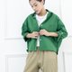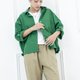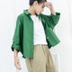 衬衫领胸前口袋下摆抽绳七分袖上衣 / 绿色 透气舒适,春夏皆宜