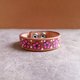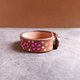 这款手绘梅花皮革手环,伴随柔软的棕色Crazy Horse皮革,围绕着一排对称的粉色花朵与俏皮的白色波点。