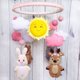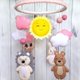 - This Forest Animals Mobile includes 4 toys (Bear, Deer, Rabbit and Hedgehog), The Sun, 6 clouds, 6 pom pom felt balls. If you want ribbon, clouds and pom pom balls of a different color, please write your color wishes in the message to the order. Your special gift to Baby Birthday, Baby Sower, Christening.