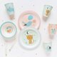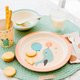 Petit Monkey竹纤维餐具以竹纤维粉末高压压制而成,天然竹纤维安全无毒,SGS安全检验合格,竹制商品本身具抗菌的功能,同时也可自然生物分解,不对环境造成伤害,疗愈可爱的图案让小宝贝在用餐时增添一分趣味,全系列竹纤维餐具包含餐碗、餐盘、杯子、叉匙。