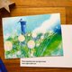 一张 5.8 x 4 英寸、300gsm 厚度的雾面明信片,印有我绘制的“Down dandelion lane”插画,单面印刷。另一面空白,供您书写消息。我的创作者信息印在左下角。